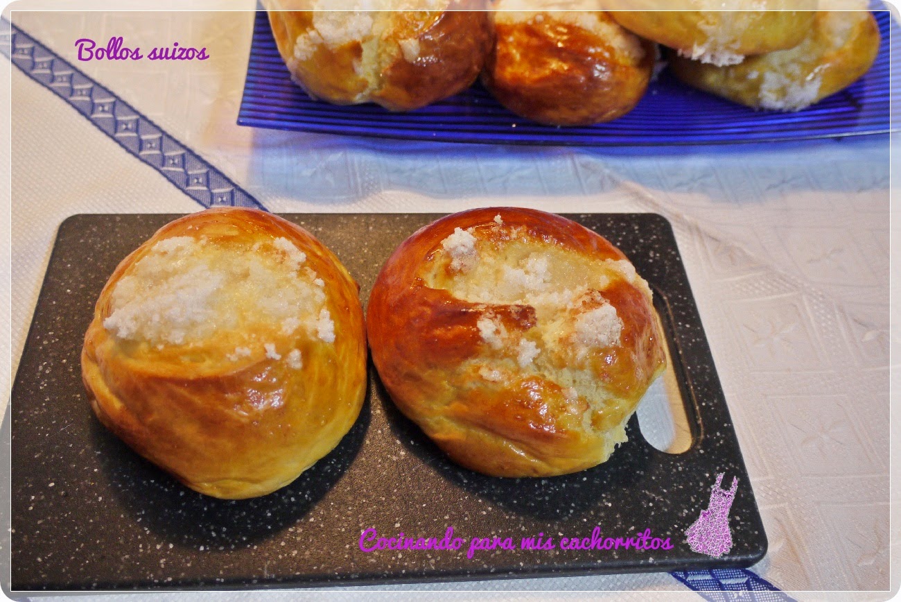 Esta receta la he sacado de aquí; ya comenté que este foro es una fuente de inspiración infinita, así que hace un par de semanas, cuando vi estos bollos suizos, se me metieron en la cabeza y no me los he podido sacar hasta que los he hecho. Yo creo que había llegado un momento en el que soñaba con ellos, así que aquí están.