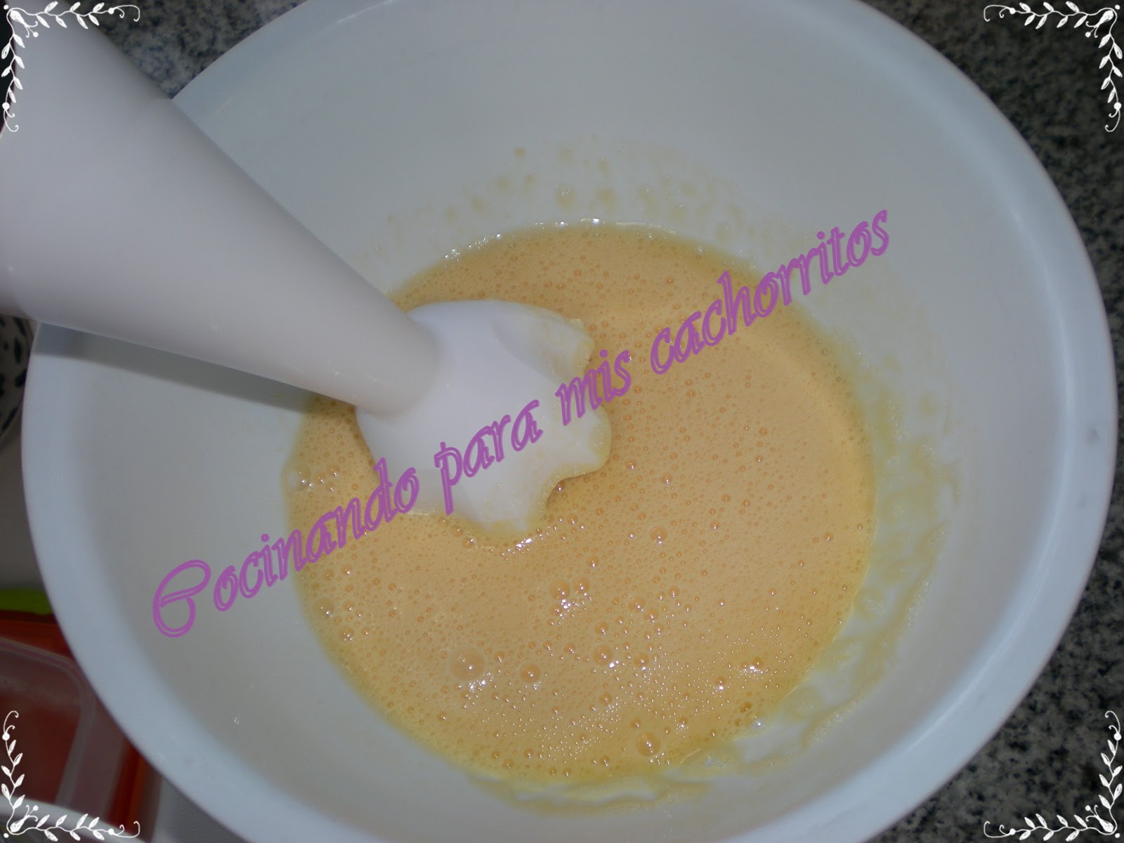 - Bate los huevos con el azúcar hasta que la masa adquiera un aspecto blanquecino.