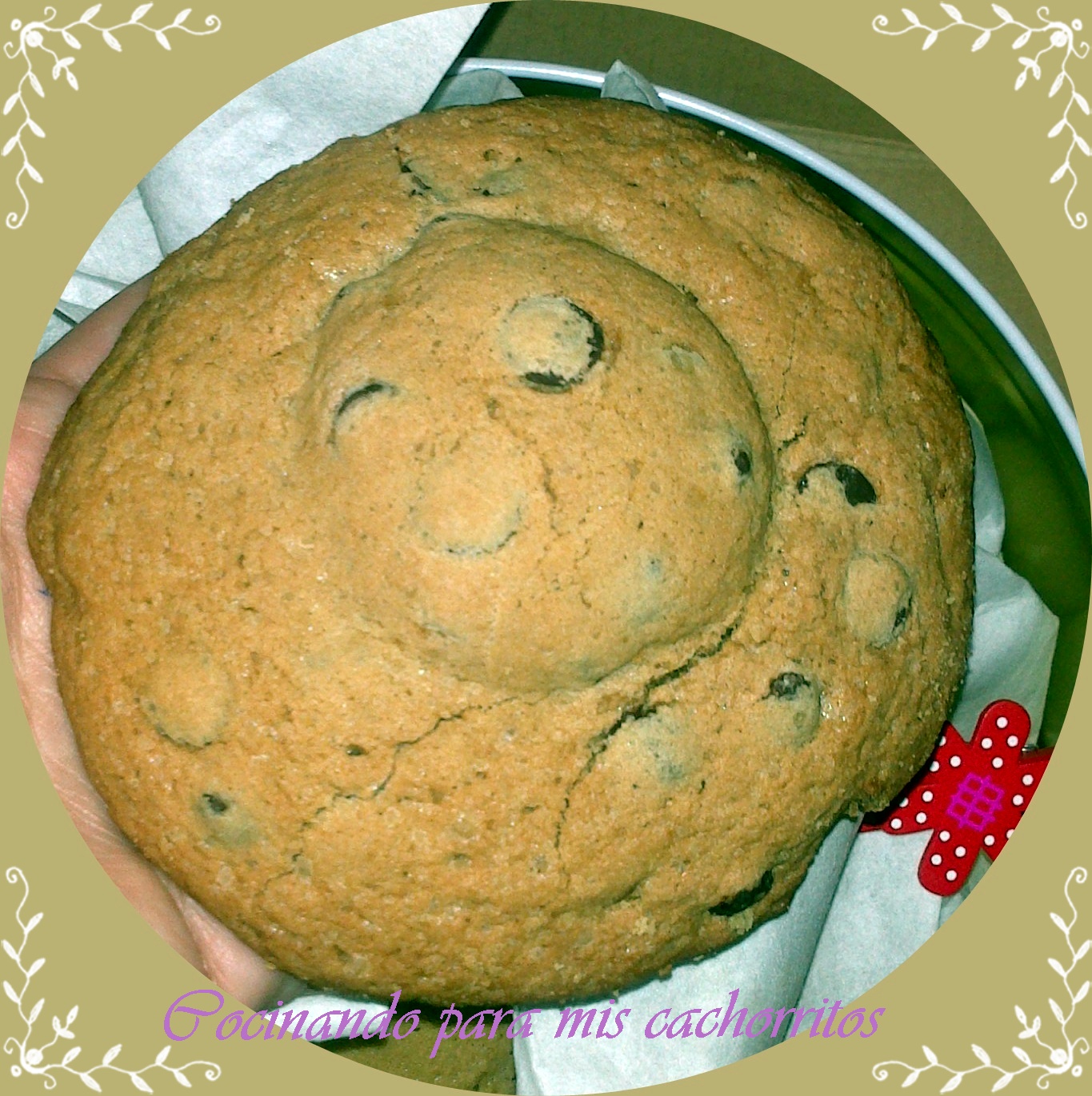Una de las galletas. Se aprecian las pepitas de chocolate, pero no el buenísimo sabor que tiene. Está deliciosa. Había dos de este buen tamaño de chocolate negro y otras dos más o menos iguales de choco blanco. Deliciosas. |