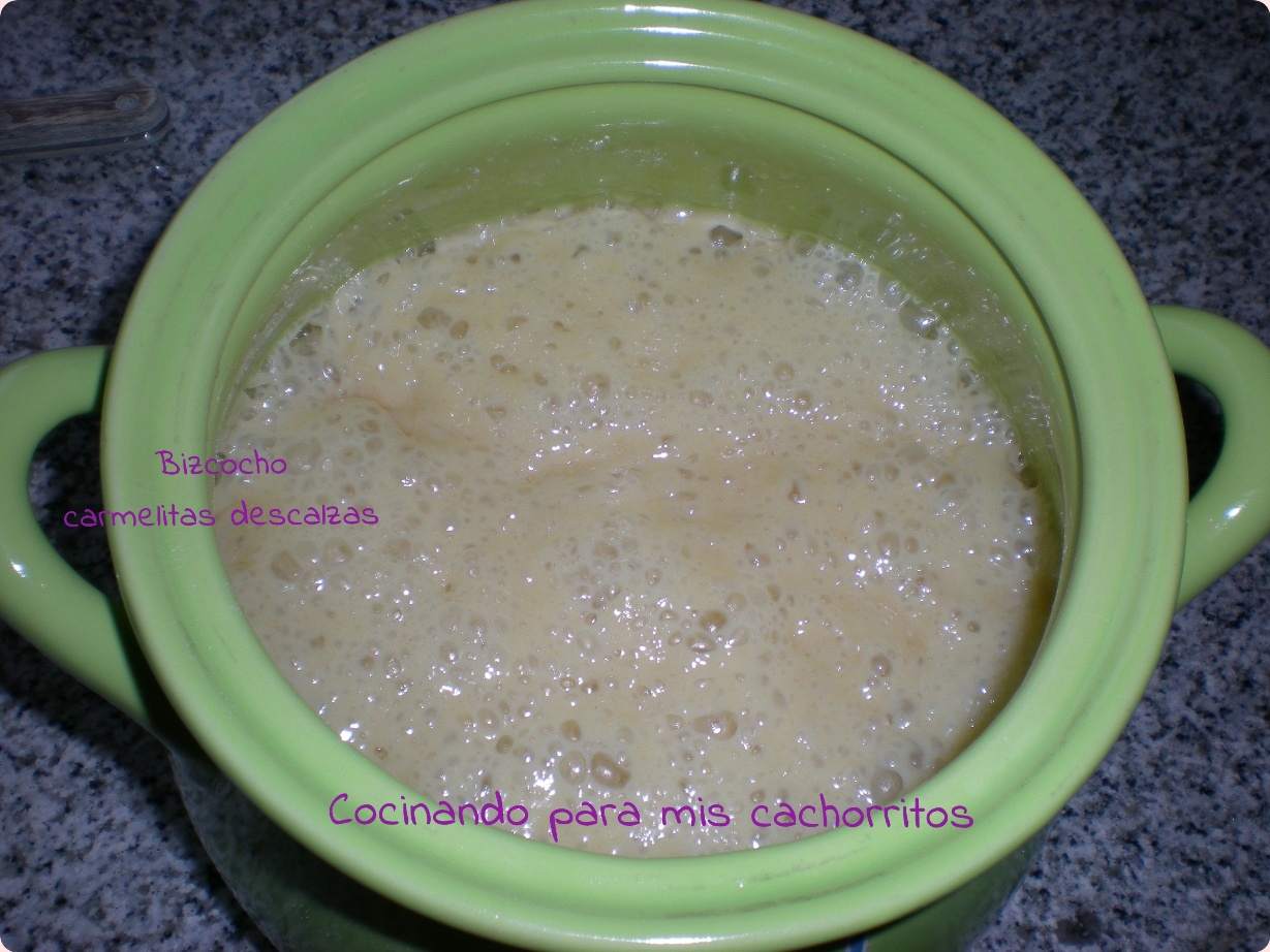 Una masa fermentada, llena de burbujitas que, supongo, serán las levaduras que se han formado gracias a la harina, el azúcar y el líquido.