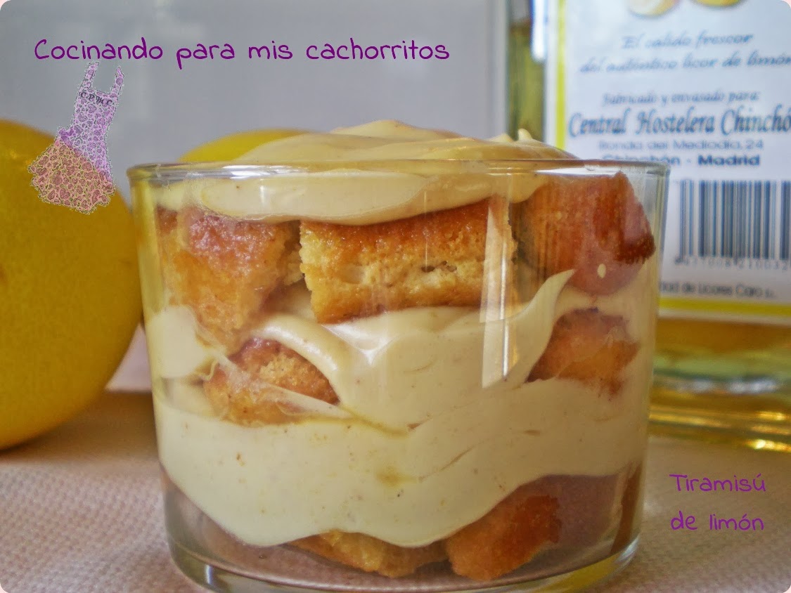 - limoncelo u otro licor de limón (yo usé limoncillo de Chinchón, que se ve en las fotos porque estaba disponible en el mueble bar de los abuelos de los cachorritos y no tenía ganas de comprar una botella entera de limoncelo para la ocasión, que luego los licores se aburren en casa. Total, limoncelo, limoncillo, quién va a notar la diferencia jijiji).