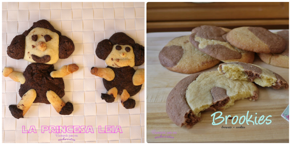 Lo primero que vamos a preparar son unas galletas súper ricas, muy fáciles y que, además, dan mucho juego. Se trata de peparar dos masas: una de cookie y otra muy parecida al brownie. De ahí toman su nombre: brookies. Necesitaremos mantequilla de buena calidad, harina, huevo y azúcar. Para la masa de brownie, la oscura, además, cacao en polvo.