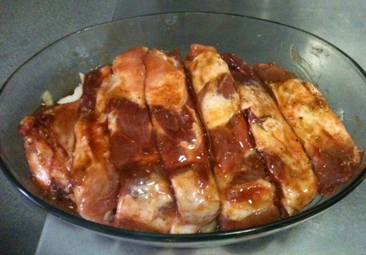costillas al horno de la abuela (de la abuela de los cachorritos). Si queréis una receta sencilla de costillas, con un ligero toque dulce en la salsa y que los niños se coman estupendamente, os las recomiendo. Y creo que Celeste también porque les han encantado.